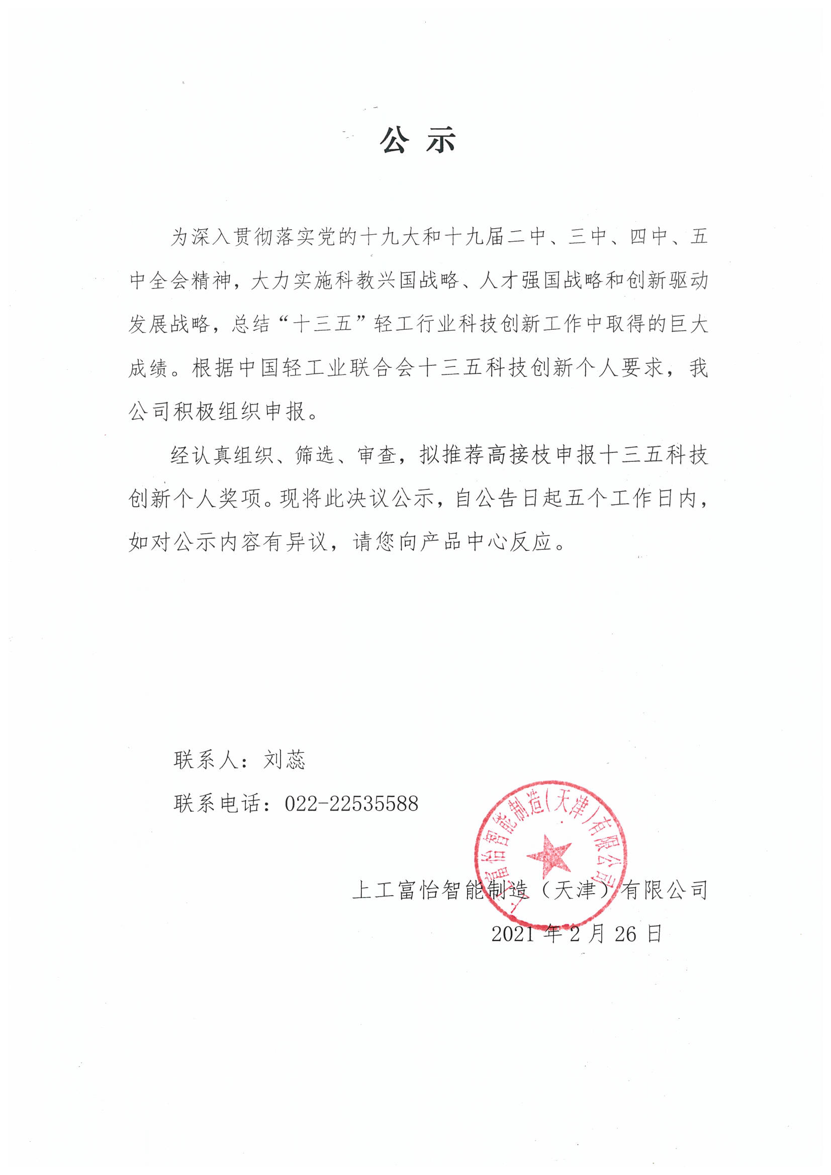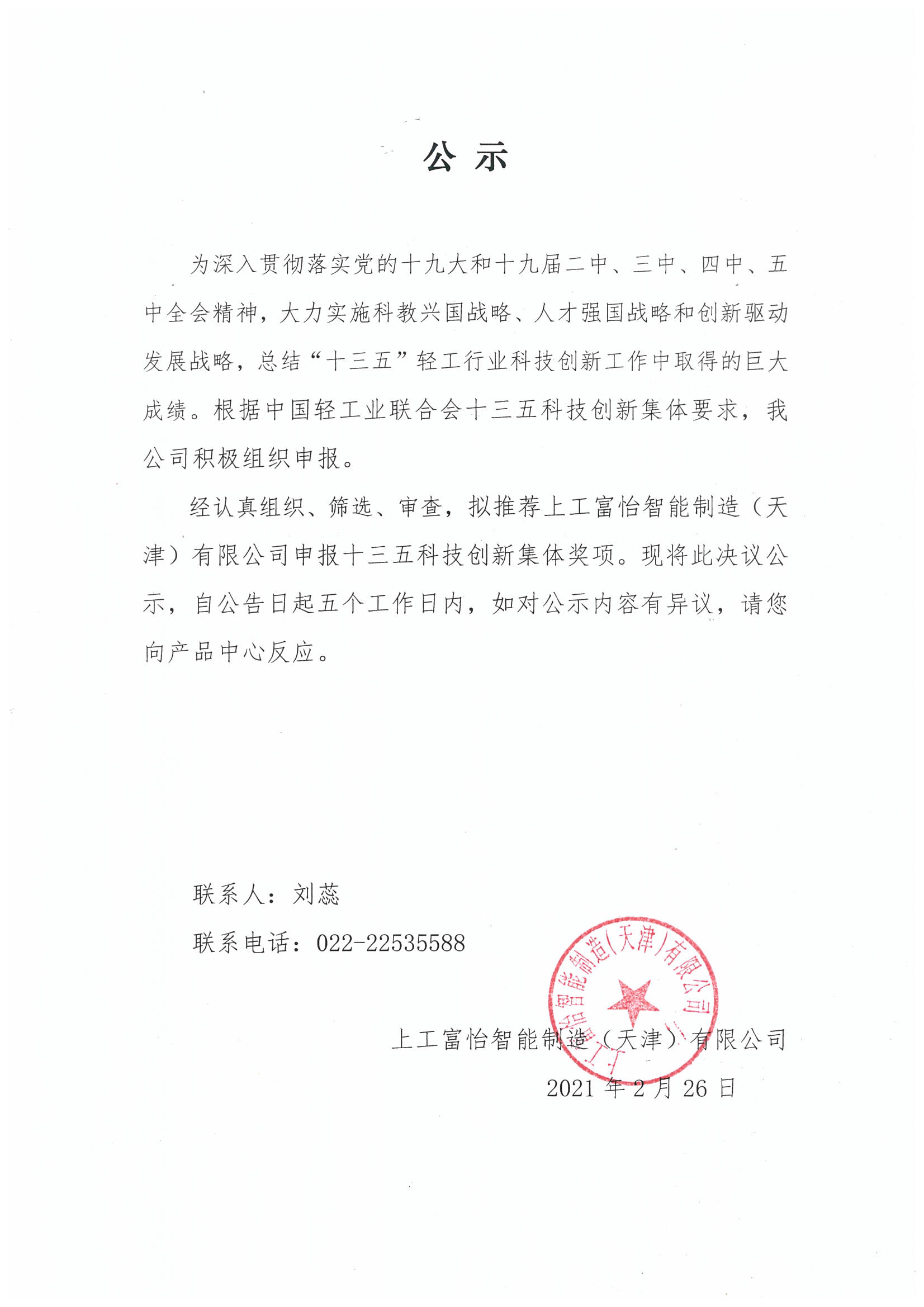 为深入贯彻落实党的十九大和十九届二中、三中、四中、五中全会精神,大力实施科教兴国战略、人才强国战略和创新驱动发展战略,总结“十三五”轻工行业科技创新工作中取得的巨大成绩。根据中国轻工业联合会十三五科技创新集体和个人的要求,我公司积极组织申报。